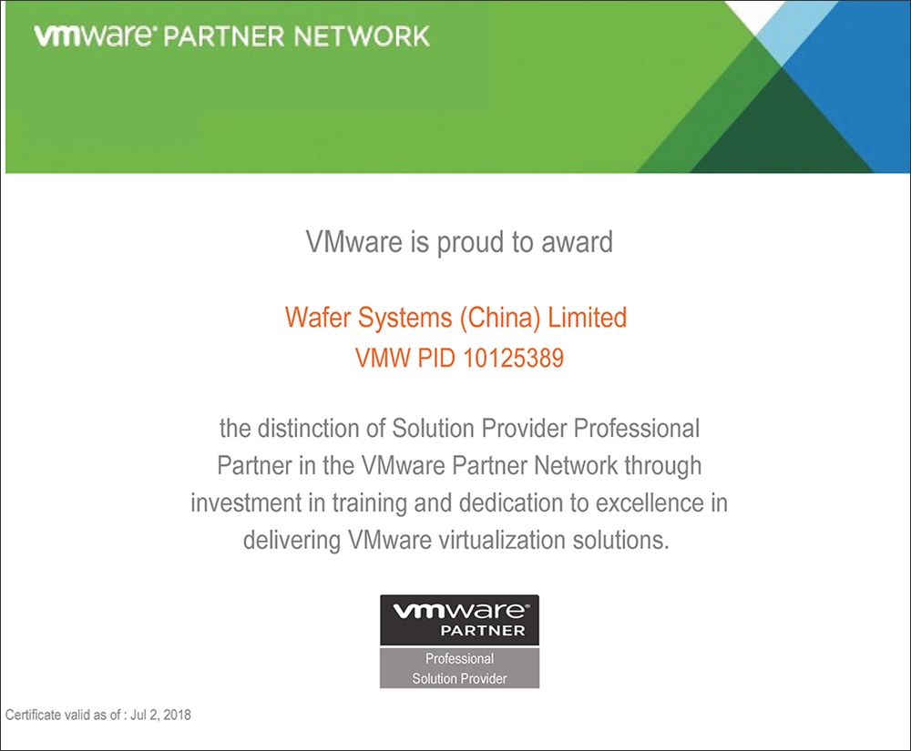 近日,威发系统正式升级为VMware 专业级解决方案提供商,此次升级加深了威发与VMware间的业务合作,威发将为更多客户提供更加全面的网络解决方案及专业服务。